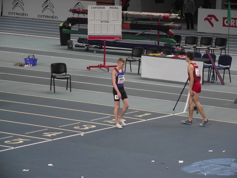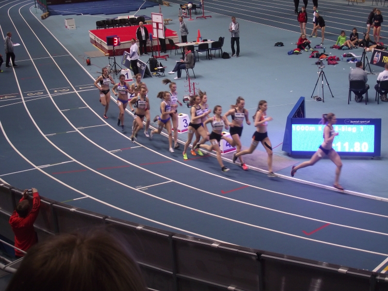 Kasia długo biegła pod koniec stawki by świetnie zaatakować na ostatnich 200 metrach. Niestety uraz stopy wykluczył ze startu faworytkę biegu na 1500 Beate Topkę.Kuba Struniawski świetnie zaprezentował się w biegu U18 na 1000m. Zrealizował założenia taktyczne i od startu trzymał się na końcu stawki , by finiszować na ostatnich 400m. 6 lokata i nowy rekord życiowy (2,36,64) poprawiony prawie 3 sekundy to nagroda za sumienną pracę. Do 4 miejsca zabrakło tylko 24 setne sekundy, a na początku Kuba był faulowany. Nasi reprezentanci spisali się na piątkę. Przesyłamy filmy z biegów Kuby i Daniela.