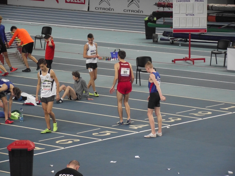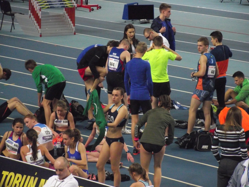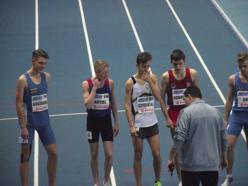 Pierwszy dzień Halowych Mistrzostw Polski U18 w Toruniu był udany dla naszych zawodników. Daniel Kryzel próbował walczyć o medal w mocno obsadzonym biegu na 2000m. Daniel biegł przez większość dystansu na drugiej pozycji za faworytem , jednak pod koniec szybsi zawodnicy wykazali się doskonałym finiszem i młody biegacz spadł na 5 lokatę, w ubiegłym roku był dziesiąty. Kasia Główczewska świetnie wypadła w debiucie w biegu na 1000m. Zajęła 5 miejsce z nowym rekordem 3,00,50.