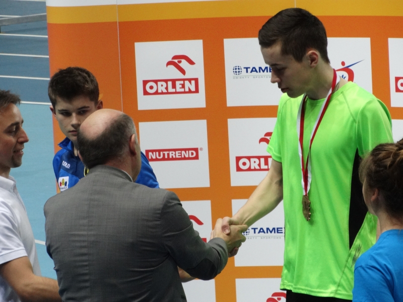 W drugim dniu HMPJ i JMł wzbogaciliśmy się o brązowy medal Leszka Gintera na dystansie 1000m. Leszek posiadał drugi wynik halowy w stawce startujących juniorów młodszych. Tempo , które nie było zbyt szybkie, dyktował od początku faworyzowany Patryk Sieradzki w Zawiszy Bydgoszcz.